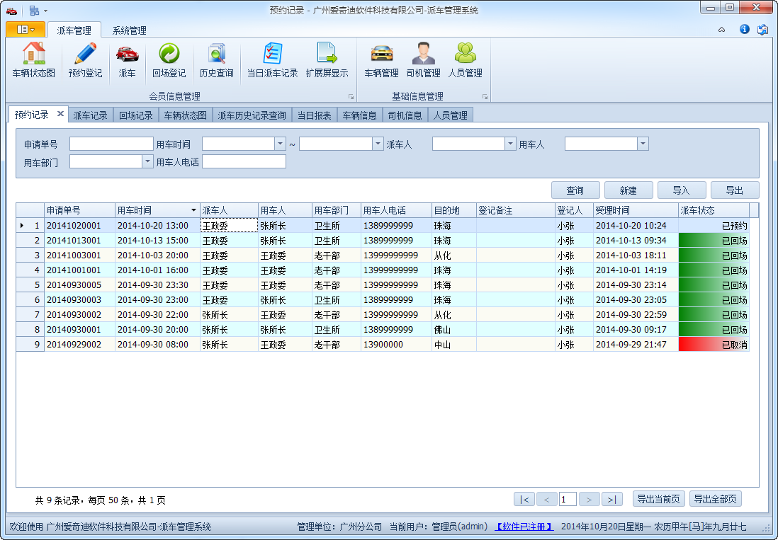 預(yù)約、派車、回場過程管理